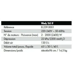 Description Produit L’aspirateur de cendres Lavor Ashley 111 est l’appareil le plus simple à utiliser pour garder le poêle à bois et à pellets propre, le foyer, les braseros de chaudières, le barbecue ou pour souffler le papier, les petits débris ou la poussière à l’extérieur de la maison.La structure est petite et compacte avec la très grande poignée supérieure utile pour le transport et le déplacement partout où cela est nécessaire; Ashley 111 est entièrement construit en Italie, gage de puissance, de fiabilité et de sécurité; En outre, il est équipé de:Moteur 800 W dynamique, robuste et fiableRéservoir en acier peint résistant à 18 lt, léger, avec crochets à dégagement rapide pour une vidange rapideInterrupteur « marche / arrêt »Fonction de soufflage grâce à laquelle il est possible de souffler des feuilles, de la litière, de petits débris au solFiltre en tissuTuyau flexible en métal de 1 m et lance d’aspirationAshley 111 est petit, compact, très efficace, idéal pour vous aider. tâches quotidiennes.Caractéristiques GénéralesAlimentation230 VPuissance800 WRéservoir en acier18 ltDébit d’air27 l/sDépression13 kPaÉquipementFonction soufflanteAccessoiresTuyau flexible en métal de 1 m, filtre en tissu