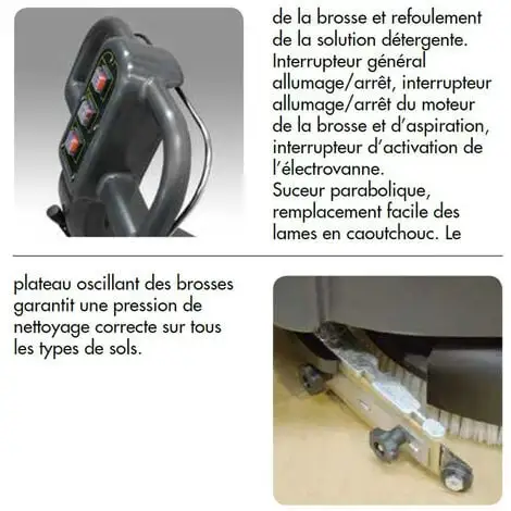 – Choix de la solution de lavage (démarrage-arrêt automatique avec électrovanne) en fonction du type de surface